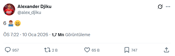 Kendisinden sonra sarı-lacivertlilerde 6 numarayı sırtına geçiren Fransız yıldızın golünün akabinde Djiku, toplumsal medya hesabı üzerinden “6” yazılı bir paylaşımda bulundu.