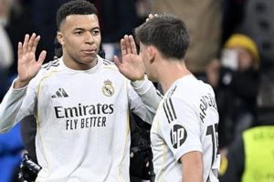 Real Madrid’in galibiyet golleri 58. dakikada penaltıdan Kylian Mbappe ve 65. dakikada Raul Asencio’dan geldi.