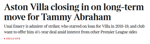 Abraham’a Premier Lig’den ilginin Aston Villa ile sonlu olmadığı ve bu nedenle Birmingham temsilcisinin elini çabuk tutma kararı aldığı belirtildi.