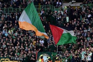 Uzun müddettir Filistin’e dayanak veren Celtic taraftarları, Braga’nın Celtic Park’ta 2-0 kazandığı gayrette “UEFA, İsrail’i olağanlaştırarak soykırıma ortak oluyor. Onları çabucak atın!” pankartı açtı.