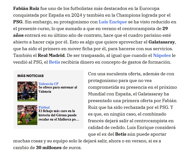 Sarı-kırmızılılar, Fabian Ruiz’in 2026 Dünya Kupası’ndaki yerini garantilemesi için ona sistemli oynama müddeti vaat eden cazip bir teklif sundu. Lakin PSG, Galatasaray’ın sunduğu bu birinci teklifi reddetti.