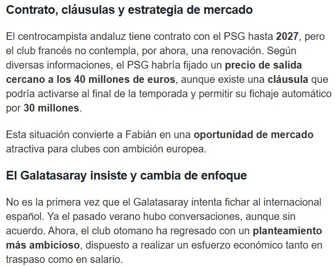 Fabian Ruiz’in PSG’den yaz aylarında ayrılmasının uzak bir ihtimal olmadığı, Galatasaray’ın baskısını artırdığı ölçüde transferi bitirebileceği de haberde yer alan bilgiler ortasında.