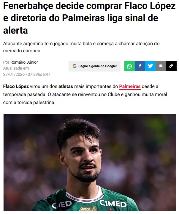 Palmeiras’ın Lopez’i göndermek istemediği lakin önerilecek sayıya nazaran gelen teklifleri değerlendirmeye alabileceği kaydedildi.