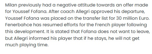 Fofana, Fenerbahçe’nin gündemine daha evvel de gelmişti fakat o periyot Milan teknik işvereni Massimiliano Allegri ekipten ayrılmasına müsaade vermemişti.