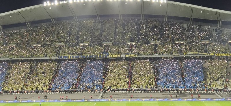 Turkcell Muhteşem Kupa Finali’nde Galatasaray ile müsabakaya hazırlanan Fenerbahçe’de taraftarlar, maçın ısınma kısmında telefonlarının flaşlarını açarak gruplarına dayanak oldu. Maç öncesi taraftarlar, kendilerine dağıtılan sarı ve lacivert renkte yağmurlukları giyerek tribündeki yerlerini aldı. Maçın başlamasına dakikalar kala sarı-lacivertli grubun tribünlerinde imaj şu haldeydi…