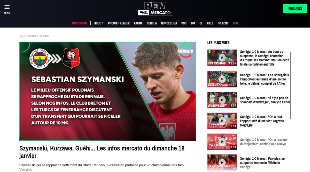 RMC Sport’un haberine nazaran Fenerbahçe, Sebastian Szymanski’nin transferi konusunda Rennes ile el sıkıştı.