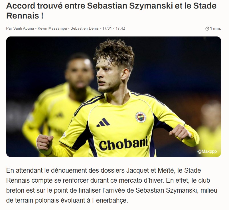 Fotomac.com.tr’nin Fransız basınından aktardığı habere nazaran, Rennes’in Szymanski ile muahede sağladı.