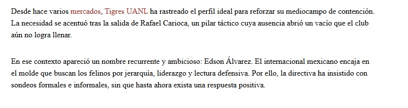 Sports Illustrated’da yer alan habere nazaran Tigres, Fenerbahçe’de kiralık olarak forma giyen Edson Alvarez’i birincil gaye olarak belirledi.