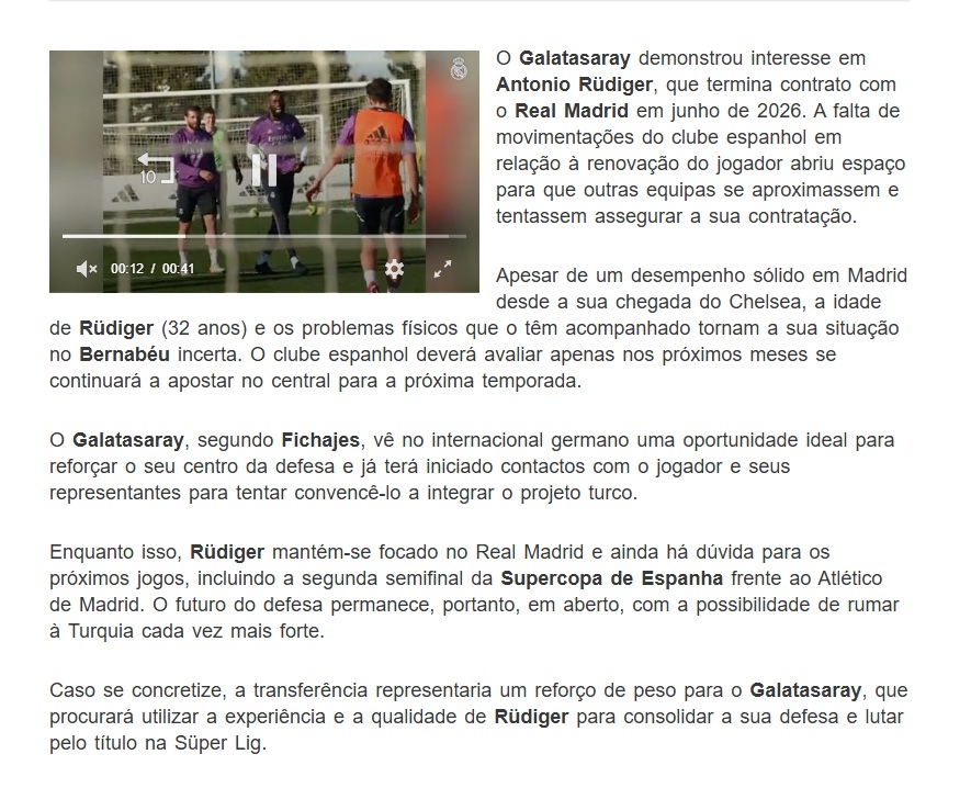 2026 yazında bitecek olan kontratını Real Madrid ile yenilemeyen Antonio Rüdiger, Galatasaray’ın bu mevki için bir numaralı adayı üzere gözüküyor.