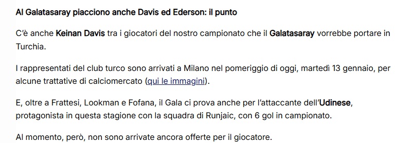 Di Marzio’nun haberine nazaran, sarı-kırmızılıların ilgilendiği öbür isim ise Udinese forması giyen Keinan Davis.