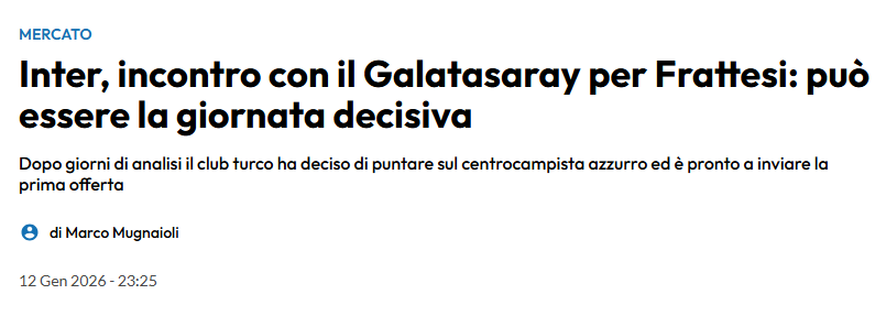 Sport Mediaset’te yer alan habere nazaran, Frattesi’nin birkaç gün evvel Galatasaray’a transfer olma ihtimaline kapıyı araladığı ve bugünün transfer için belirleyici gün olabileceği sav edildi.