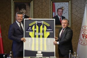 Görüşmenin ardından Fenerbahçe Kulübü Lideri Sadettin Saran, Bakan Bak’a üzerinde sarı lacivertli futbolcuların imzasının yer aldığı forma armağan etti.