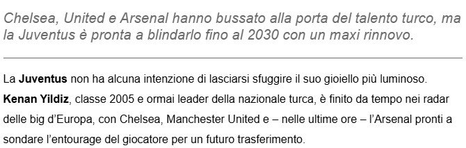 2005 doğumlu oyuncu için Avrupa’dan gelen dev ilgiye, üç Premier Lig devi de dahil oldu. İtalyan basınından Bianconera News’ün haberine nazaran ulusal oyuncu için Chelsea, Manchester United ve Arsenal, Juventus’un kapısını çaldı.