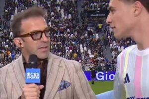 Juventus-Atalanta maçı öncesi enteresan anlar… Ulusal oyuncumuz Kenan Yıldız, saha kenarında yorumculuk yaptığını gördüğü Del Piero’nun yanına gitti ve canlı yayında selam verip kucaklaştı. Başarılı futbolcu, kısa bir sohbet sonrası ısınmaya devam etti.