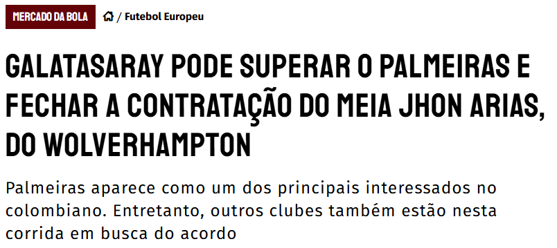 Öte yandan Jhon Arias’ın 2026 FIFA Dünya Kupası öncesi formda olmak ve nizamlı mühlet alabileceği bir grupta oynamak istediği belirtildi.