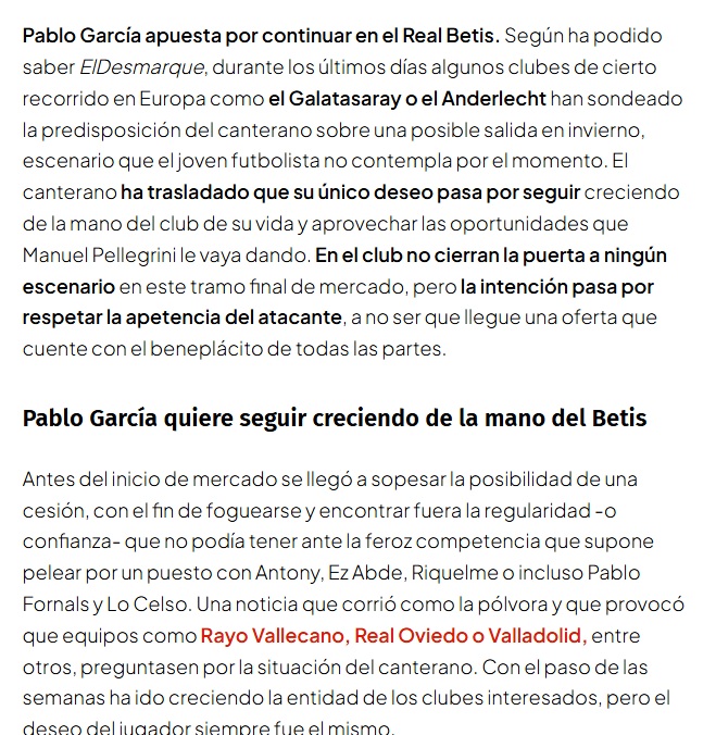 Altyapıdan yetişen oyuncu, tek isteğinin “hayatının kulübü” olan Betis’te gelişmeye devam etmek ve teknik yönetici Manuel Pellegrini’nin kendisine vereceği fırsatları pahalandırmak olduğunu iletti.