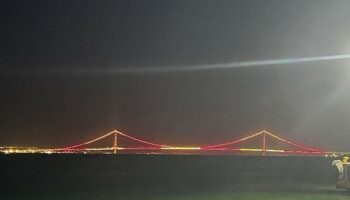Galatasaray'ın Trendyol Süper Lig'de 25. şampiyonluğunu elde etmesinin akabinde Çanakkale Köprüsü, sarı-kırmızı renklere büründü.