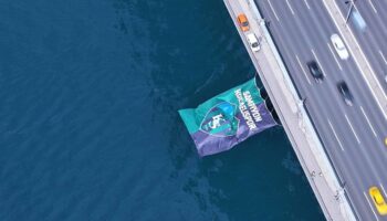 1. Lig 2024-2025 dönemi şampiyonu Kocaelispor’un dev bayrağı, Kocaeli Büyükşehir Belediyesi tarafından Fatih Sultan Mehmet Köprüsü’ne asıldı.