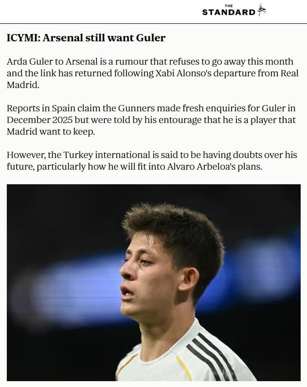 İngiliz basınından The Standard’ın İspanyol basınından derlediği o habere nazaran Arsenal, 2025 yılının Aralık ayında Arda Güler için yine nabız yokladı fakat oyuncunun etrafından “Madrid’in tutmak istediği bir oyuncu” yanıtını aldı.