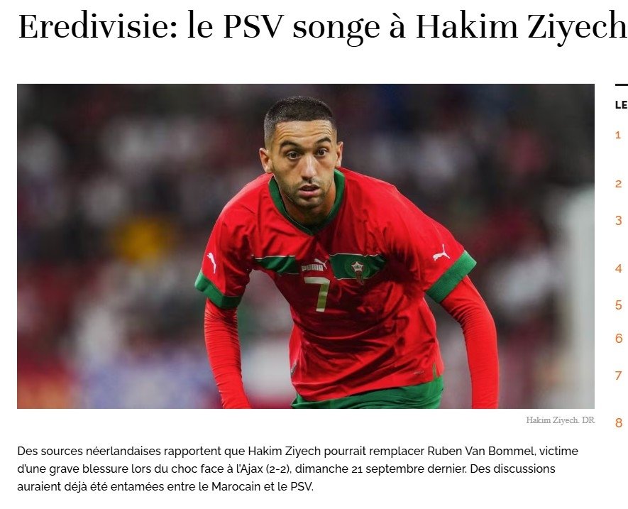 Lions de L’Atlas’ın haberine nazaran, PSV forması giyen Ruben Van Bommel’in sol dizinden önemli bir sakatlık geçirmesi sebebiyle Hollanda kulübü, Hakim Ziyech’i takımına katmayı düşünüyor.