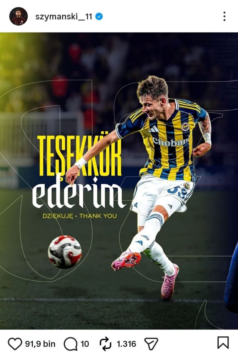 Fenerbahçe’nin Polonyalı oyuncusu Sebastian Szymanski, sanal medya hesabından yaptığı açıklamayla sarı-lacivertli kadroya veda etti.