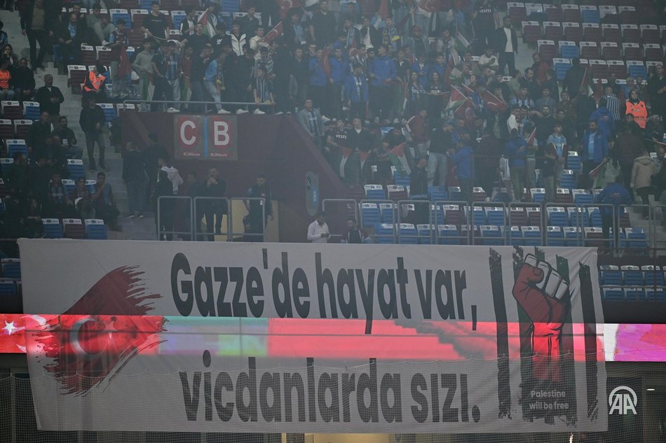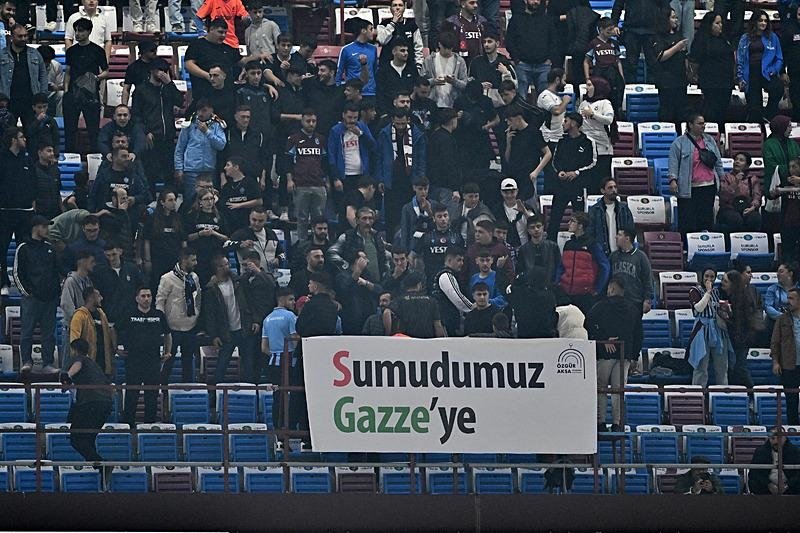Trabzonspor tribünlerinden Gazze’ye destek! Trabzonspor, Trendyol Muhteşem Lig’in 8. haftasında Kayserispor’u 4-0’la geçti. Bordo mavili taraflar ise Gazze ve Sumud Filo’suna takviye pankartları açtılar. İŞTE O ANLAR: İlginizi Çekebilir:Trabzonspor Başkanı Ertuğrul Doğan’dan Uğurcan Çakır’ın transferi sonrası flaş açıklama!