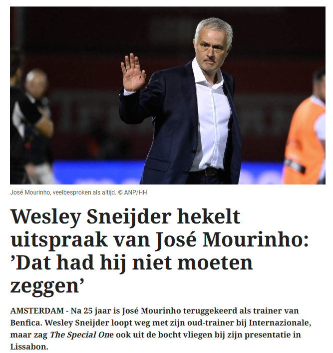 2010 yılında Mourinho ile Inter’de yolları kesişen ve deneyimli çalıştırıcı ile birlikte UEFA Şampiyonlar Ligi Kupası’nı kaldıran Hollandalı, Jose’ye duyduğu hürmete karşın onun “yoldan saptığını” tabir etti.